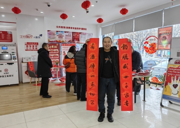 新春佳節(jié)來臨之際,工行周口分行傳承中華民族習(xí)俗,積極營造歡樂祥和吉慶的節(jié)日氛圍,精心組織本行書法家和書法愛好者在營業(yè)網(wǎng)點開展“寫春聯(lián)送福字賀新年”活動,為廣大群眾送上新春美好祝福。