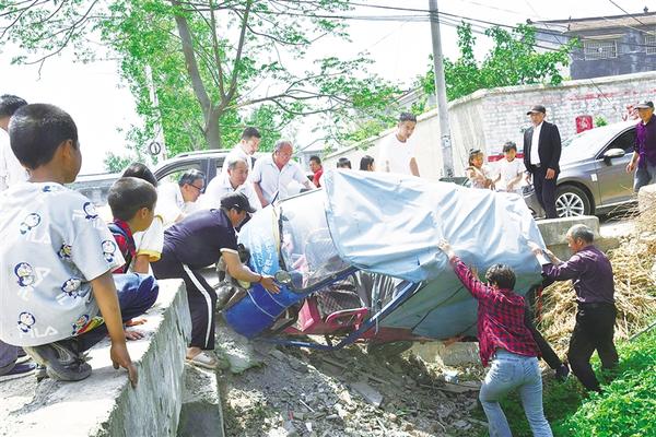 4月18日,眾人合力將三輪車抬出路溝。當(dāng)日12時左右,西華縣田口鄉(xiāng)李陳村東邊的一處十字路口,一名村民騎著三輪車不慎從橋上栽入路溝,車上載有兩個孩子。市文聯(lián)三級調(diào)研員李哲、市民協(xié)主席杜忠義、西華縣文聯(lián)主席王鵬飛等人到田口鄉(xiāng)開展民間文學(xué)田野調(diào)查工作,正好從此處經(jīng)過,聽到喊聲后,他們急忙下車救援。