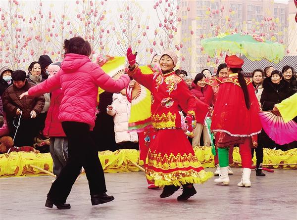 1月30日下午,一名市民興奮地加入到扭秧歌隊伍中。當天,關(guān)帝廟景區(qū)民俗節(jié)目表演精彩紛呈,人們在逛春會、賞民俗中開心過大年。
