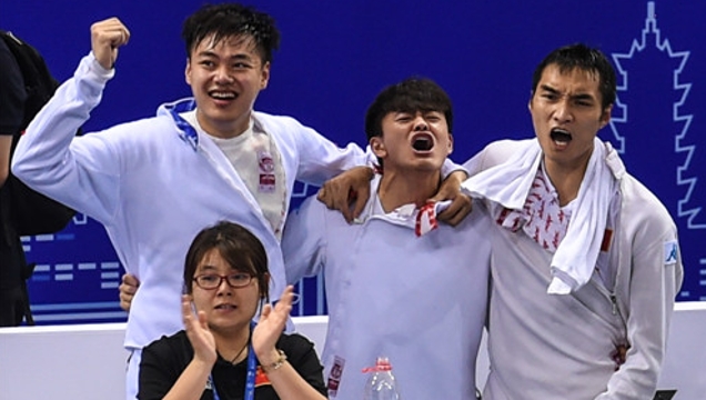2018世界擊劍錦標(biāo)賽:中國(guó)隊(duì)晉級(jí)男子重劍團(tuán)體八強(qiáng)